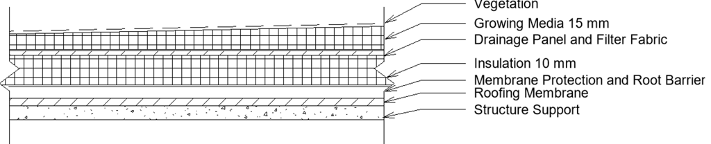 Growing Media (15 mm): Provides a lightweight growth substrate that minimizes dead load to reduce structural stress.
