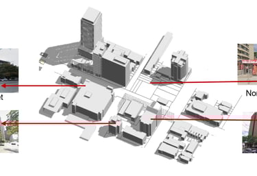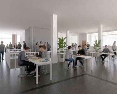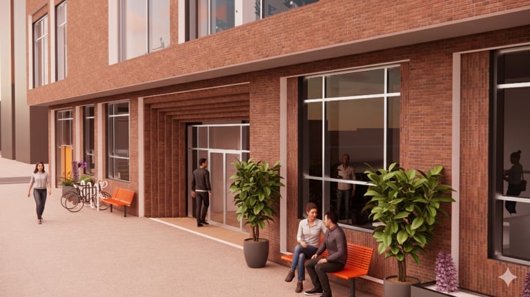 All architectural geometries were fully modeled in Revit, with space-specific furniture and materials assigned and rendered using Enscape. To streamline the workflow and accelerate visualization, I used customized AI prompts in post-production to add human figures and urban elements, enhancing realism while preserving the original design intent.