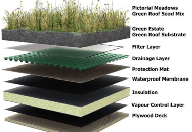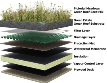 Drainage and Filter Layer: Manages water runoff to prevent soil saturation and excessive weight on the roof.