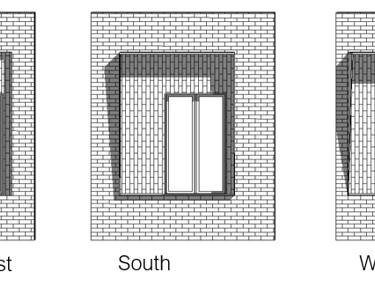Solar-shading overhangs are sized and positioned to control seasonal sunlight and support natural ventilation in the Passive House student residence.