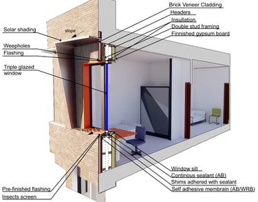 Triple-glazed Passive House windows integrated with insulated window bucks