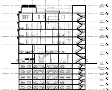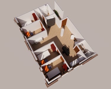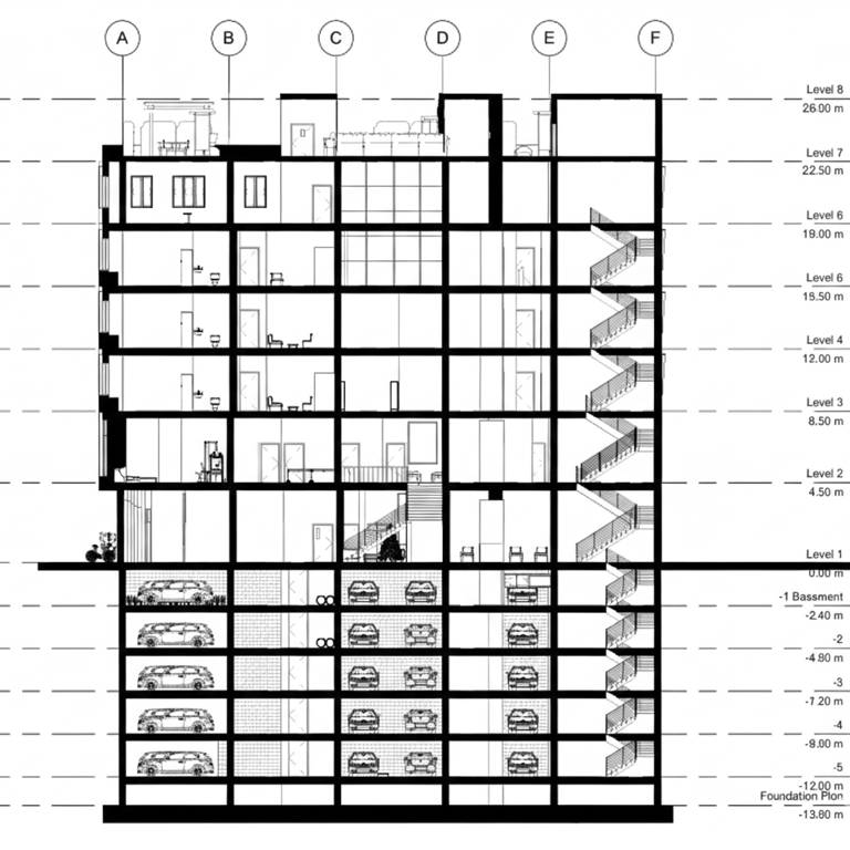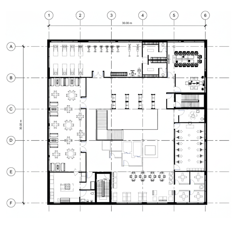 This project is informed by the Ontario Building Code (OBC) 2024, with Part 3 serving as a key framework for design decisions. Code requirements guided the resolution of egress, exit travel distances, unprotected openings, and life safety measures, directly influencing the building’s spatial organization and circulation. The result is a design that integrates regulatory compliance with clear, efficient architectural planning.